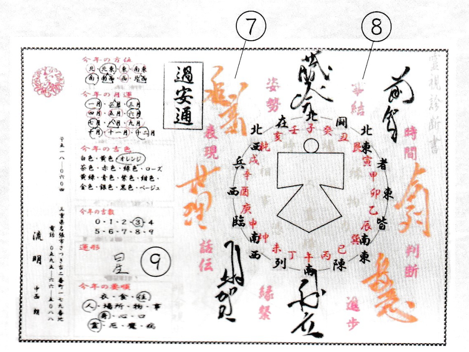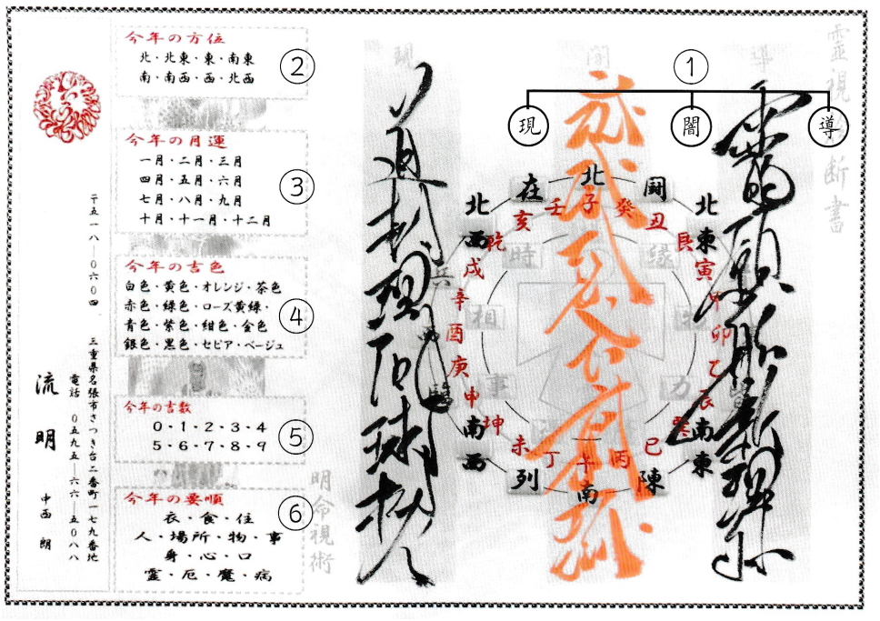 ①時間・方向・姿・気から、現在の様子と原因・導き方を仏法用語であらわいています。